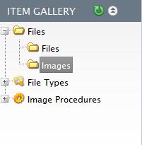 The “Item gallery” can be found under “Content” in the navigation bar. Here you can manage images, files and other media. It is possible to upload images, files, videos and other documents you want to publish. The items are divided into two folders: