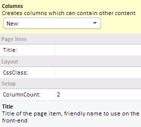 The columns control divides content area into columns,