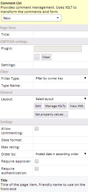 - Require approval: Should the list contain only approved comments.