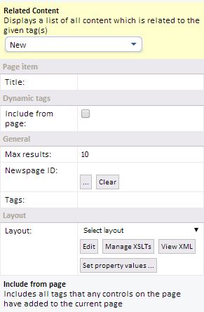 - Tags: The tag/tags to list related content for. You can specify multiple tags by separating them with a comma.