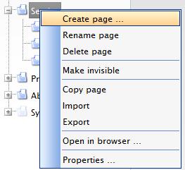 - Right click on the page in the Web Tree under which you want the new page to appear