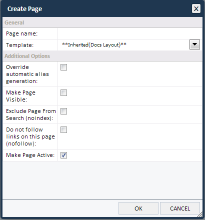 - “Override automatic alias generation” - To overwrite the alias that otherwise would be created with the Name of the page, check the box.