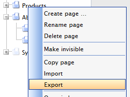 - Right click the page name and choose “Export”.