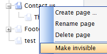 - To make a page visible again, right click on the page name and choose “make visible” from the menu.