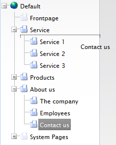 Pages can be moved by dragging and dropping them in the Web Tree. To do this follow these steps: