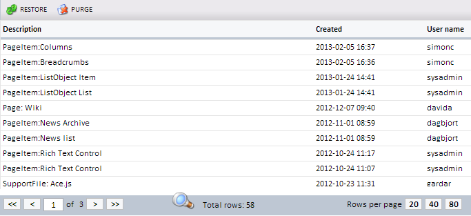In the "Recycle bin" are all items, pages and controls that have been deleted can be found here.